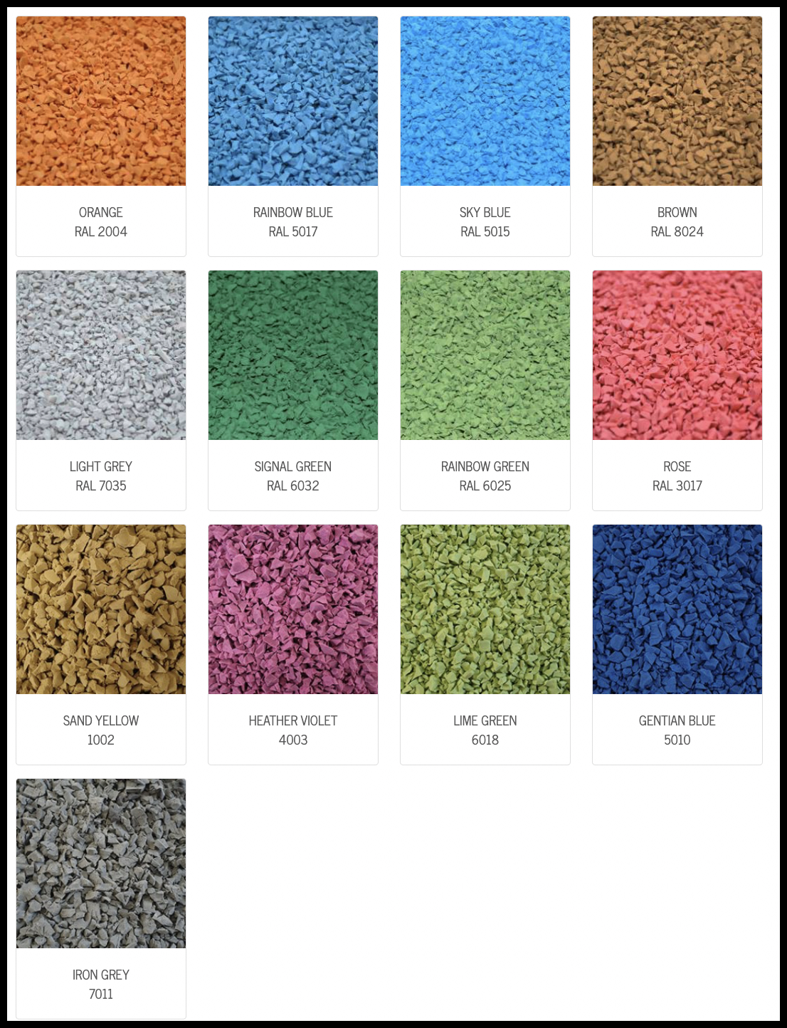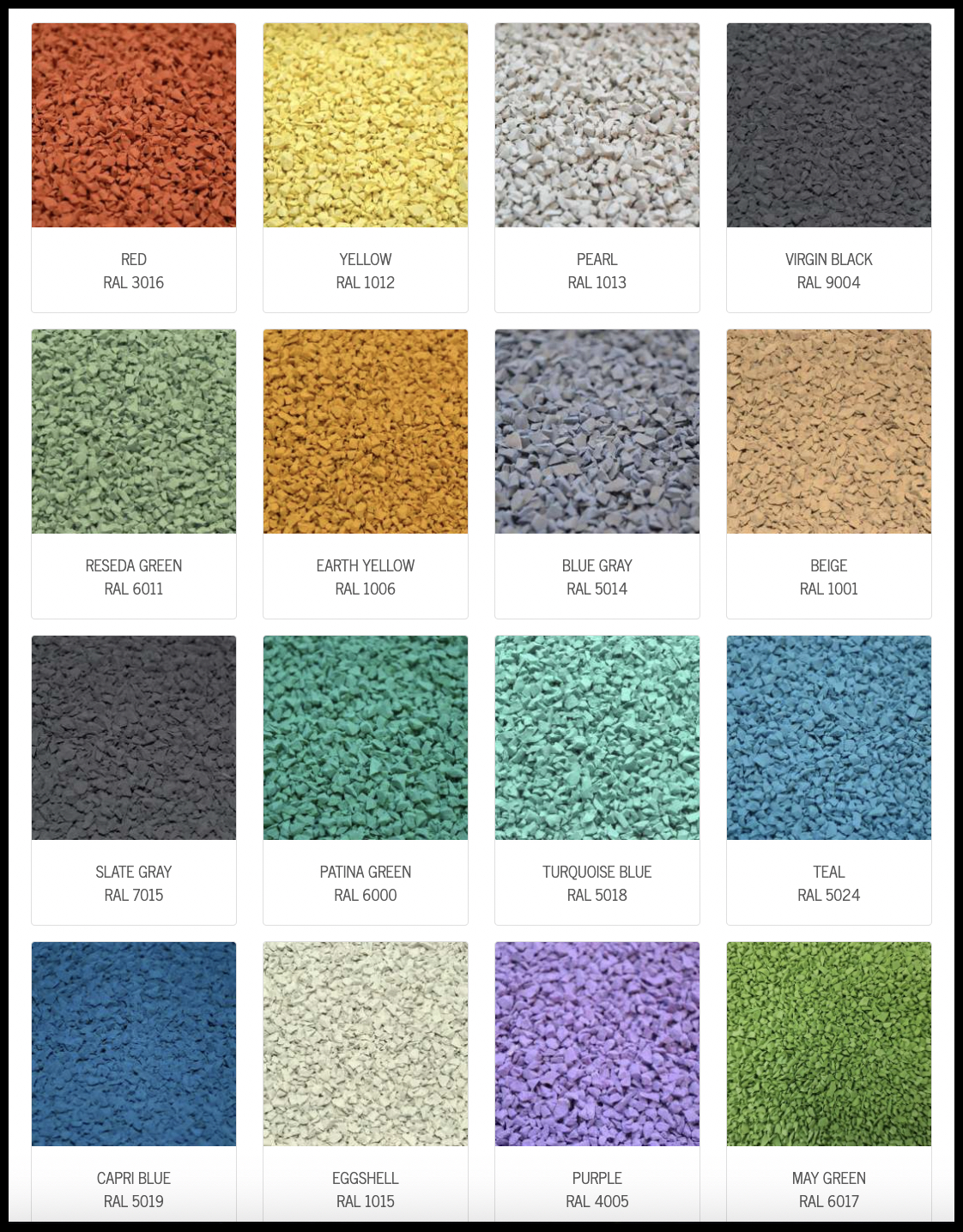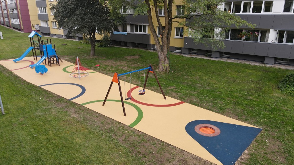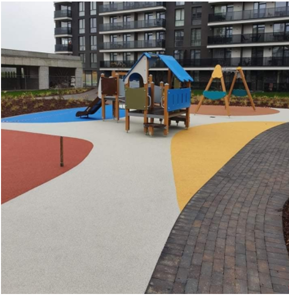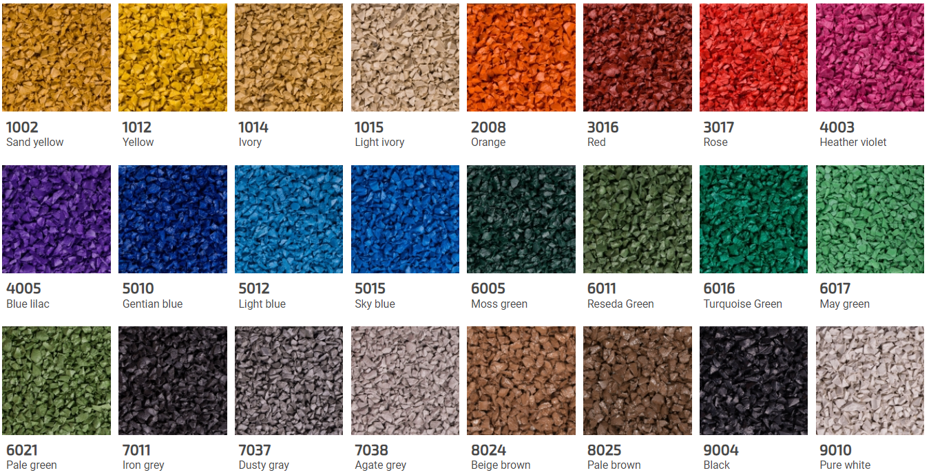 Įrengiant vaikų žaidimų akšteles rekomenduojame neapsiriboti viena EPDM dangos spalva. Siekiant skatinti vaikų lavinimąsi, siūlome aikštelėms pasirinkti kelias skirtingas spalvas, formuojant iš jų geometrines figūras, akcentuojant žaidimų įrangos vietas arba tiesiog sukuriant ištisus grafinius piešinius.
