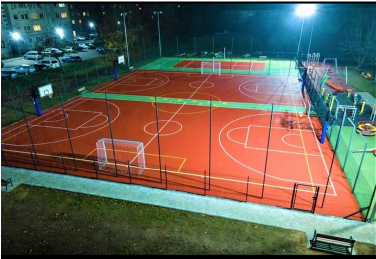 Universalių žaidimo aikštelių sintetinė danga specialiai sukurta visų tipų žaidimams. Apatinis sluoksnis 8mm, klojamas klotuvu, maišant poliuretaninį rišiklį su juodomis gumos granulėmis. Viršutinis sluoksnis 8mm, klojamas taip pat klotuvu, poliuritaninį rišiklį maišant su EPDM (1-4mm) spalvotomis granulėmis. Danga atspari dėvejimuisi ir lengvai prižiūrima. Tai universalių žaidimo aikštelių sintetinė danga specialiai sukurta visų tipų žaidimams su kamuoliu.